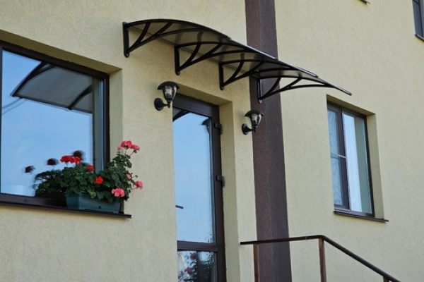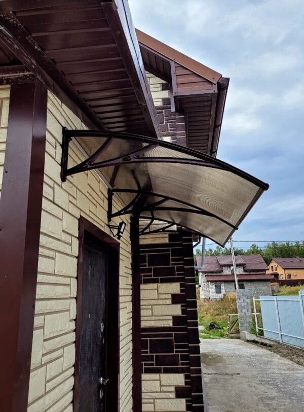 Козырьки изготовлены из синтетических материалов и алюминиевых вставок. Кронштейны изготовлены из высококачественного полипропилена, а полотно - из сотового поликарбоната. Материалы не выделяют токсинов при нагревании на солнце. Они также выдерживают резкие перепады температур, не нарушая целостности материалов и структуры.